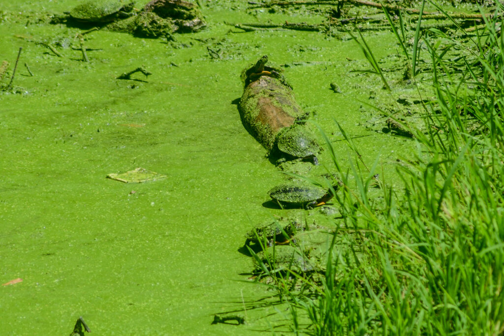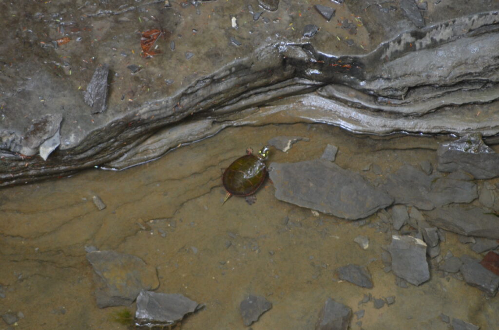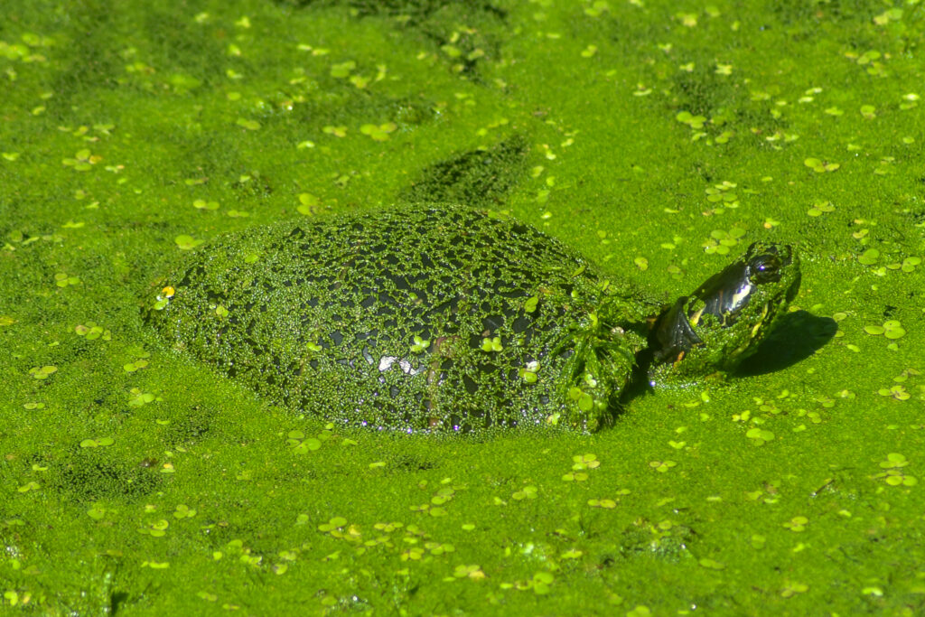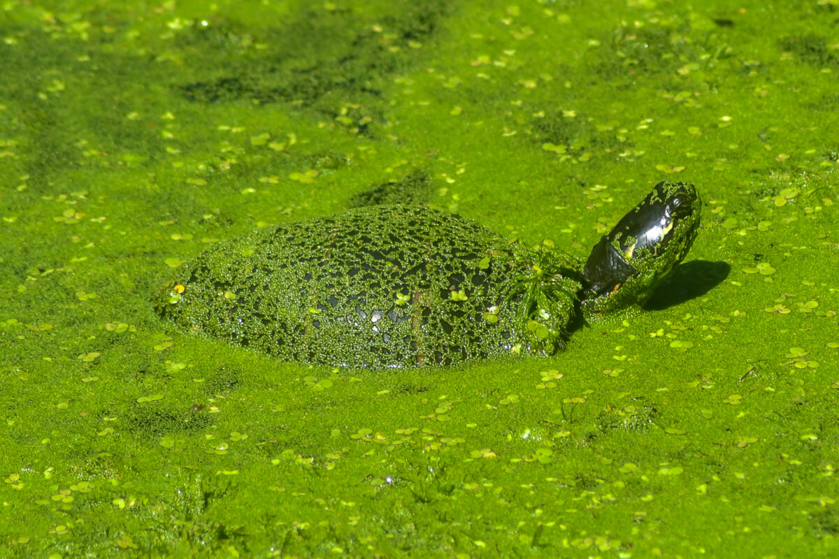The most common turtle in the eastern United States, they can often be found in calm waters or basking on nearby rocks or logs, often in large groups. They are named for and distinguished by their colorful markings.
